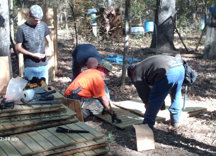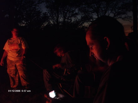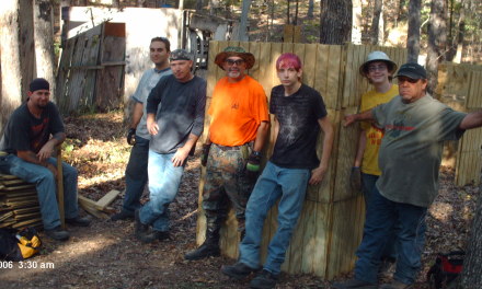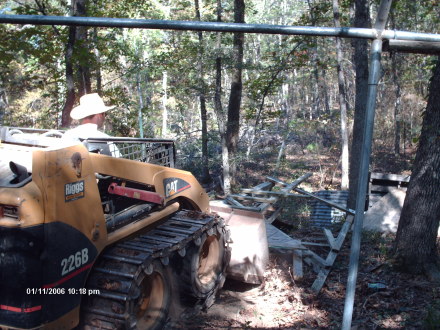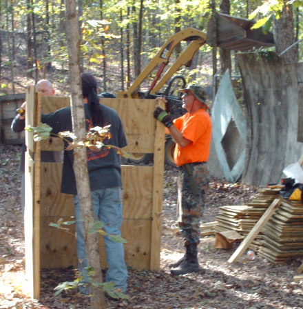 Personal Log: Deliverance Cleanup, 2011![]() Chicken Plucker of the IKV Deliverance had announced that after a long hiatus, he wanted to do another Deliverance Wars. This was negotiated in conjunction with the IKV Bayou Serpent and all is well. Given that the field has not been used in years, it was going to need a lot of work. Thus, CF declared a "work weekend" to clean up the field. Very luckily for me, "the Company" has finally hired me away from the call center and into an actual computer technical support position. In this new position, I can actually request and get days off now and then. Squeeze, Caraneth and I drove up from Texas. Captain Ripar drove up from Louisiana. Others drove in from further west Arkansas and other parts of Texas. So multiple members of multiple ships showed up to assist our Brother in Paint in getting the field ready. Most of us arrived Friday night and we had a pretty grand time getting back together for the first time in years. We did crash at midnight so that we could get ourselves moving in the morning. The original object was to clean up the field. Triage the structures and remove anything that was worthless or unsafe. We were sorting salvageable wood from dead wood. We were rebuilding bunkers from wood salvaged from "dead" bunkers. Trees were cut down and cut apart. Limbs were harvested. This would have easily been an all day affair. However... Fred allowed us the use of his Bobcat and generator which made a humongus difference. The Bobcat made quick work of moving the dead wood. Caleb drove the Bobcat and the highlight of his day was knocking down the main machine gun tower. The generator, once it arrived, allowed for the use of non-battery power tools. It arrived in time as the batteries were all about gone. Hand tools of course worked, but we were getting tired of that stuff. Ripar and I donated to the Cause and CF was able to buy a LOT of scrap wood from his neighbors. Granted we bought it rather late in the day, but we still managed to manufacture 4 treated wood bunkers of various designs. There is still a huge pile of treated wood with which CF can build over time. About 1800, we declared "Day" and gathered tools and headed to base. CF's mom and Alisha had chili and french fries going for the group. FOOOOD!!! We ate and kicked back to make up for lost time. We built a nice bonfire (found out the next morning that there was a burn ban) and gathered for hanging out together. In the morning, it was time to get gathered, gone and headed back to the Daily Grind. I commented to CF and Ripar that I shot no paint, I busted no caps, I swung no batleth, but I still had a great time that weekend. Comment: You will note the presence of weaponry in the photos. There was a reason. They got used. Oddly enough, we only found one copperhead. Squeeze skinned it and is treating the skin so that she can use it later. Strength and Honor, Commander Salek, Sutai Ship's Brewer, IKV Melota