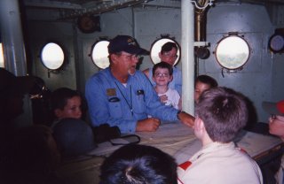 By this time, the regular tour time had arrived and they had to start locking down the ship. We acquired our gear and saluted the Scout Troops colors as they were brought down.