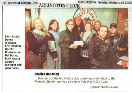 2002 July Picture in the Fort Worth Star Telegram for donations to Arlington Women's Shelter.