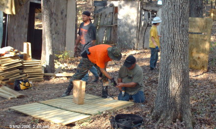 Personal Log: Deliverance Cleanup, 2011![]() Chicken Plucker of the IKV Deliverance had announced that after a long hiatus, he wanted to do another Deliverance Wars. This was negotiated in conjunction with the IKV Bayou Serpent and all is well. Given that the field has not been used in years, it was going to need a lot of work. Thus, CF declared a "work weekend" to clean up the field. Very luckily for me, "the Company" has finally hired me away from the call center and into an actual computer technical support position. In this new position, I can actually request and get days off now and then. Squeeze, Caraneth and I drove up from Texas. Captain Ripar drove up from Louisiana. Others drove in from further west Arkansas and other parts of Texas. So multiple members of multiple ships showed up to assist our Brother in Paint in getting the field ready. Most of us arrived Friday night and we had a pretty grand time getting back together for the first time in years. We did crash at midnight so that we could get ourselves moving in the morning. The original object was to clean up the field. Triage the structures and remove anything that was worthless or unsafe. We were sorting salvageable wood from dead wood. We were rebuilding bunkers from wood salvaged from "dead" bunkers. Trees were cut down and cut apart. Limbs were harvested. This would have easily been an all day affair. However... Fred allowed us the use of his Bobcat and generator which made a humongus difference. The Bobcat made quick work of moving the dead wood. Caleb drove the Bobcat and the highlight of his day was knocking down the main machine gun tower. The generator, once it arrived, allowed for the use of non-battery power tools. It arrived in time as the batteries were all about gone. Hand tools of course worked, but we were getting tired of that stuff. Ripar and I donated to the Cause and CF was able to buy a LOT of scrap wood from his neighbors. Granted we bought it rather late in the day, but we still managed to manufacture 4 treated wood bunkers of various designs. There is still a huge pile of treated wood with which CF can build over time. About 1800, we declared "Day" and gathered tools and headed to base. CF's mom and Alisha had chili and french fries going for the group. FOOOOD!!! We ate and kicked back to make up for lost time. We built a nice bonfire (found out the next morning that there was a burn ban) and gathered for hanging out together. In the morning, it was time to get gathered, gone and headed back to the Daily Grind. I commented to CF and Ripar that I shot no paint, I busted no caps, I swung no batleth, but I still had a great time that weekend. Comment: You will note the presence of weaponry in the photos. There was a reason. They got used. Oddly enough, we only found one copperhead. Squeeze skinned it and is treating the skin so that she can use it later. Strength and Honor, Commander Salek, Sutai Ship's Brewer, IKV Melota