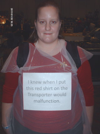 Personal Log: Women of Science Fiction, Jan 2011![]() I attended the "Women of Science Fiction" convention in Plano (TX) this weekend. As the name implies, this convention was honoring the actresses of television and movies with which we grew up and also watch today. I don't remember everybody's real name, thus from my perspective, I saw: Commander Uhura Innara Caprica Six Starbuck There were other wonderful women present of TV show and movies of which I don't keep track. I do not intend to snub them. Somebody else will probably chime in with their names. The IKV Melota was not running a table, however, they are always trying to recruit. Dr. Gizmo was working security for the convention. Mrs. Gizmo was working with the USS Joshua. Me, I was running around trying to find possible recruits as a "general admission". As far as recruiting goes, this trip did not get even a nibble. In spite of the headlining guests, I seemed to have more elbow room. The day was the first 70 degree, sunny day in over two weeks of 50 and cloudy. Thus, there were fewer new costumes and mundane prospects. We saw many costumes, however, these were the regular regulars that we always see. I commented later that I took few pictures because I have most of the "regular regulars" in my photo album already. I did meet a fine young fellow that is learning how to make his own fan films. We discussed technical information for about an hour. Commander Ripar (IKV Bayou Serpent (LA)) was present as a cylon and had a much better time this trip. The apparent lesser turnout meant that he did not wait 6 hours in line to get his autographs. Ripar was able to cruise around and enjoy the convention this time. I also met Daryl Frazetti (anthropologist and an acquaintance of Ripar). He was present as a panel guest and was offering a paper on fan films of which I took note. Being a video producer, we discussed fan films at length. I'm not an anthropologist, nor do I play one on TV, however, I had a great time talking with him about his work. Commander Salek, Sutai Ship's Brewer, IKV Melota On January 29th the IKV Bayou Serpent carried out a 2 pronged attack on the conventions of the Cold Revenge Quadrant. Lt B'ehrmaq attacked the New Orleans Comic Con and Kiral and myself attacked the Women Of Sci-fi con in Plano,TX. This Personal Log is for the latter. Kiral represented the ship by wearing a class B uniform since she was going to be wrangling me in my cylon armor. The IKV Melota had a joint table with a feddie club and had 2 uniformed Klingons present. Guests included Nichelle Nichols,Tricia Helfer,Katee Sackhoff,Morena Baccarin,Yvonne Craig,Anne Lockhart,Erin Gray,and Alaina Huffman. This time we purchased the VIP tickets and had a much better experience than the last time when I stood in line the ENTIRE con. We got in just before 10am and got our badges before I started getting dressed. My cylon armor was an enormous success! Representatives from many clubs were present including KAG,the 501st,the BSG colonial fleet,and a group of costumed female superheros. All of the celebrities I had come to see were very friendly. Anne Lockhart asked to have her photo taken with me since she was on the original BSG. We got lots of autographs and a photo op with Katee and Tricia in which Katee was getting confused about hearing the cylon eye noise but realized I was in line to have my photo taken and had everyone in the room laughing. We also spent time with Salek and Daryl Frazetti of Trekkies whom we bestowed with a baby bloodwine mug due to his short stature. I couldn't find one with a nipple or a sippy cup version so this one had to do! Thanks so much to Kiral for making sure I didnt step on any kids or break my neck in the crowded dealer room. I cant see a thing in that helmet. Cmdr Ri'Par sutai-bortaS IKV Bayou Serpent CO Cold Terror Fleet XO