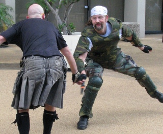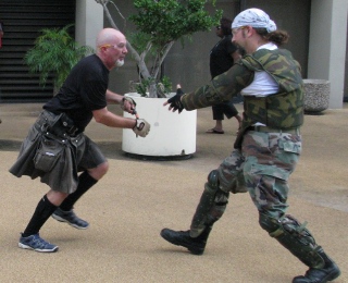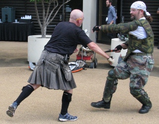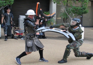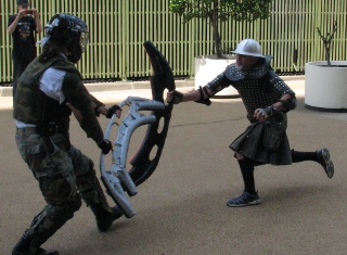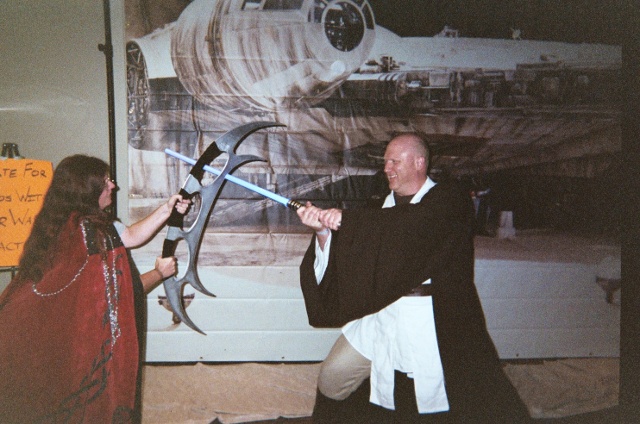 ![]() Personal Log: Space City Con, 2012 This was the first Space City Con so everything was up in the air about how well this con would go. I think that it was one of the best run that I have seen. I'm basing this on how much time the owner did not waste putting our administrative fires. George could be seen strolling through the floors talking to everybody. Things just seemed to go smoothly. There were multiple floors with vendors, fan tables, combat and gaming. Volunteers seemed well organized. Panels were running smoothly. In summary, this was worth the trip. Earlier, at BayouCon, one of the vendors (MechCorp) noticed our efforts and suggested to George that he contact some klingons to invite down to his con. I was thus contacted and we discussed the idea of getting some of us to come down. We made arrangements to have a fan table and possibly doing a panel. Upon arriving, we set up the KAG recruiting table about 1500 Friday. This was recruiting for KAG for the Houston area. We had hoped to see our new Houston recruit, alas, that was not to be. The recruiting table ran Friday 1500-2200, Saturday 0800-2200, and Sunday 1000-1700. We had solid manning of the table with four of us present for these durations. We also had quite a few potential hits. It remains to be seen if any actually sign the KAG robo-app. There were two hits solid enough that I have contact information. That was the reason that Squeeze and I went. And, we certainly thank Dragen and Amy for assistance with the table and generally keeping us company. Friday night, Squeeze read the Con program and noticed that the IKV Melota is in the program. That puts the IKV Melota in a con program for the first time to my knowledge. She also noticed that the IKV Melota (I) had a panel to do at 1300 Saturday. That panel was quite extemp. I took my keyboard for my palmtop to the recruiting table and started working on an outline. The presentation pretty much followed the outline. It was about the "klingon culture". Where do we get it? How do we live it? I was privileged to be allowed with the other VIPs to a more private meeting with Nichelle Nicholes. We met in a conference room and were able to ask questions and hear her stories in a less formal setting. She was giving panels and book signings during the days and I did ask for her to sign her book of which I have a copy. I was also present when George presented a plaque signed by the Mayor of Houston honoring her for her work with NASA and by extension, Houston, the Space City. Saturday afternoon, I fought with Muerte of the Mech Corp, again. This was long planned and eagerly awaited. We went up to the LARP level and borrowed some of their space. I brought a set of armor, helmet and weapons for him so that we could be more serious about this than at BayouCon. I was still very much limping from my May foot surgery. However, unlike BayouCon, the stitches are out. We had a great time fighting for about an hour. It was great associating with the MechCorp again. I look forward to being at a con with them next year. And, a rematch with Muerte. This was a great Convention. Strength and Honor, Commander Salek, Sutai Ship's Brewer, IKV Melota ![]() On stardate 08/11/2012, Kaldera & I, Dragen (aka Amy Christensen & Tony Christensen), of the IKV Melota & House Draconus traveled to the Terran city of Houston, Texas to join Salek & his parmachi in representing the empire at the 1st year premiere of SpaceCity Con (Their charity for theis year was called "Kids Need To Read"). Departing at 2300 hours (give or take) in Kaldera's warp capable shuttle, we made for the event. After unloading and trying to rest some, I ventured down to the main floor to pick up my volunteer badge and to see where my duty station was. Being assigned to entrance security, and not having to report for duty till 1230 hours, I decided to do a bit of recon and see what was what. The 2 big celebrities of the event were Nichelle Nicholes (Uhura from Star Trek:TOS) and Jason David Frank (aka Tommy Oliver the green power ranger and well respected martial artist in the real world). Authors Laura & Tracy Hickman were there (very personable and friendly couple, even stoping by my duty station to see how we were doing and ask a few questions), as well as a host of anime and comic artists and others I can't recall. There was even a fan group for "Legend of the Seeker" there seeking signatures to try and get the show renewed (OF course, Kaldera and I signed the petition cards). Other fan groups there included (besides the IKV Melota) the USS Zavala (Probably misspelled that). The Mighty Morphing Texas Rangers (A cosplay fangroup based in the power ranger universe), a mechwarrior group ( can't remember the name of (But whom Salek is familiar with) with their VR battle pods, the 501st and Kessel base (representing the Star Wars universe), a local ghost busters fan group and a whole bunches of gaming types in a room adjacent to the dealers room on the 3rd floor. 1230 hour I reported for duty and made sure Terrans entering the con had the proper security clearance for the day, answered questions posed by terrans and celebs alike, and basically got to meet and greet all sorts of new and different life forms (especially of the costumed variety. being relieved of duty at 1630 hours I reported for duty to the IKV Melota's sector and did my duty for the empire. I attended no Q&A panels or anything this day as there were none I was interested in, but I did get to meet and talk with Nichelle Nicholes for about 5 minutes at her signing table upstairs; a most friendly and personable woman. Sunday arrives. I reported for duty at 1000 hours for more entrance security. At 1300 hours I was released to attend the Jason David Frank Q&A (One of my main goals for that weekend being to meet him), and was pleasantly surprised to see a star so fan loyal (He has even fired an agent or 2 because they were not fan friendly). JDF loves acting (no matter the role),