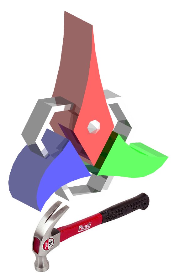 The primary symbols are a modified Triskelfoil. It is modified by having a jewel to represent the value of the recipient. The tool below represents the Service to a specific person or family.