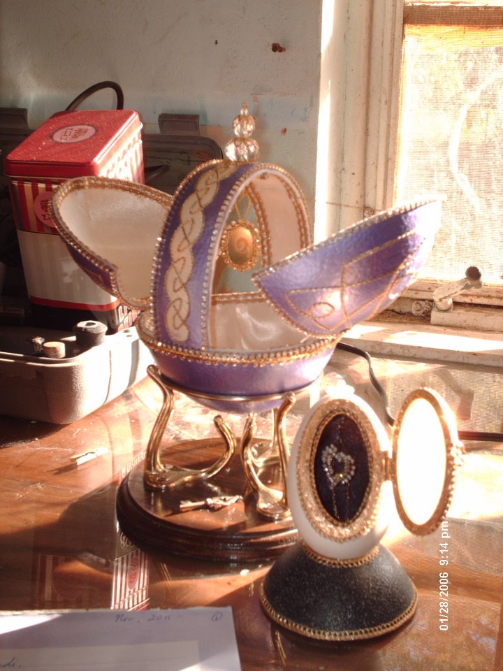Here is a nesting set. The smaller egg holds the necklace and yet it fits inside of the larger egg.